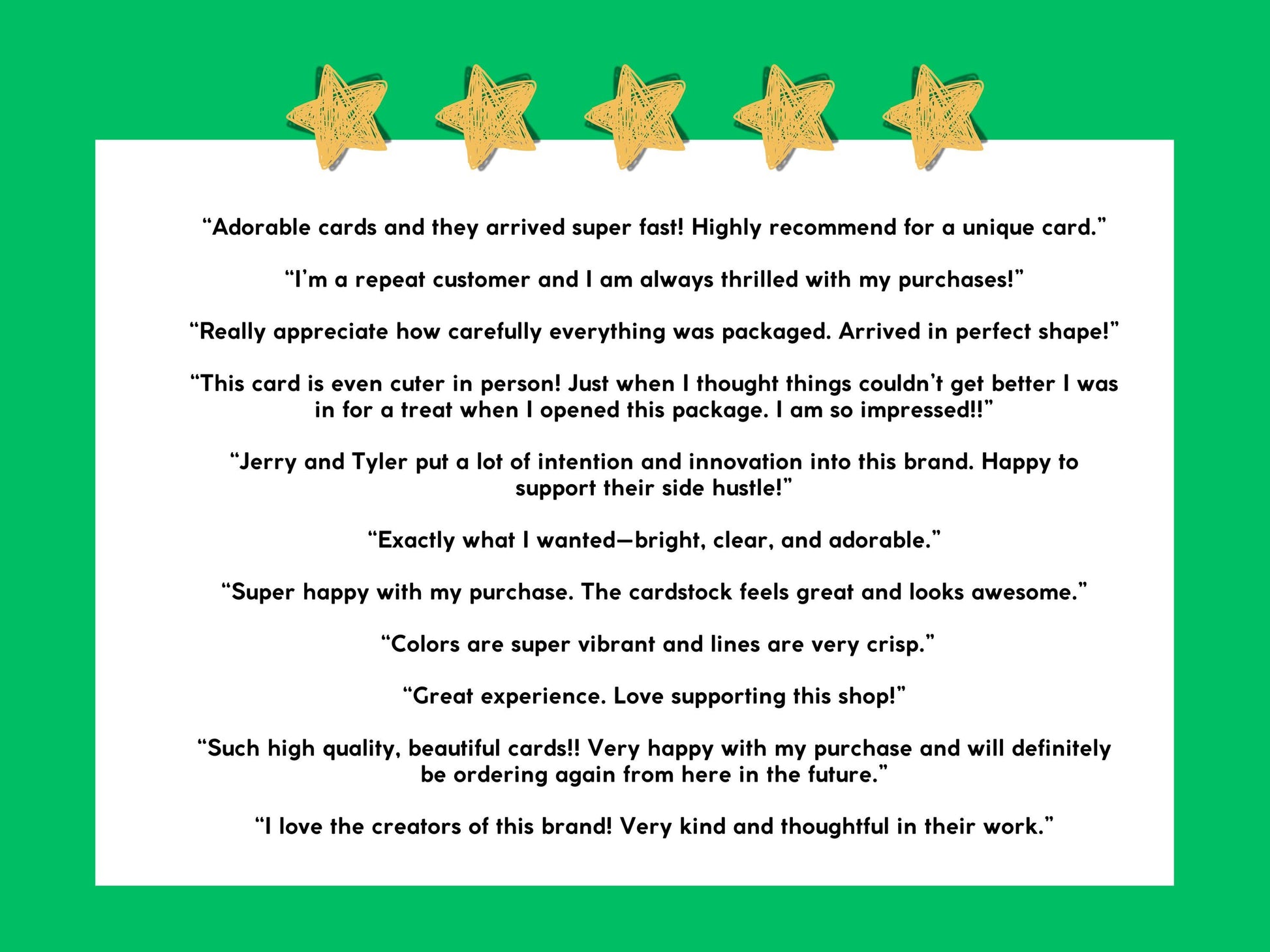 Cards are printed on 60lb Premium Matte Plus cardstock using non-toxic ink and shipped in individual clear plastic sleeves with high-quality Kraft or white self-sealing envelopes included.